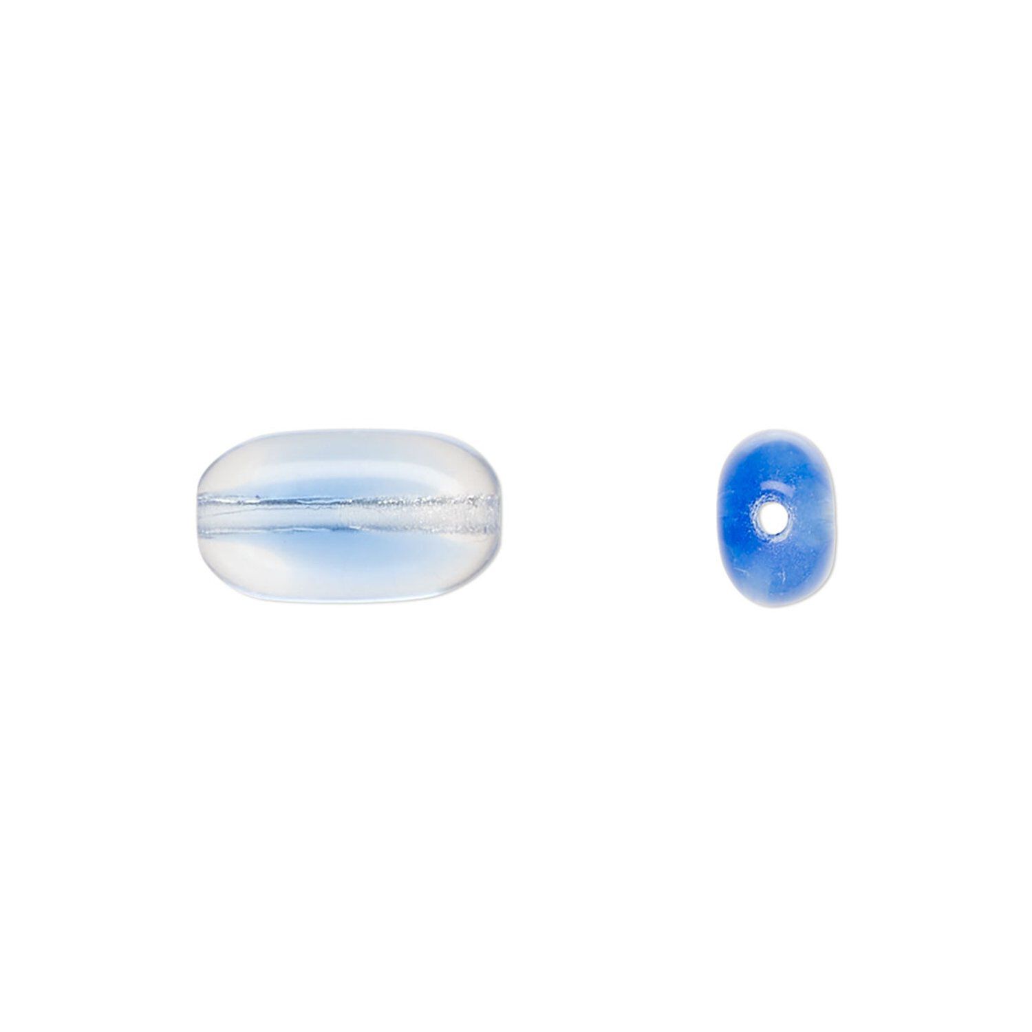 Bead, Czech pressed glass, blue/clear, 13x7mm flat oval. Sold per 15" to 16" strand.