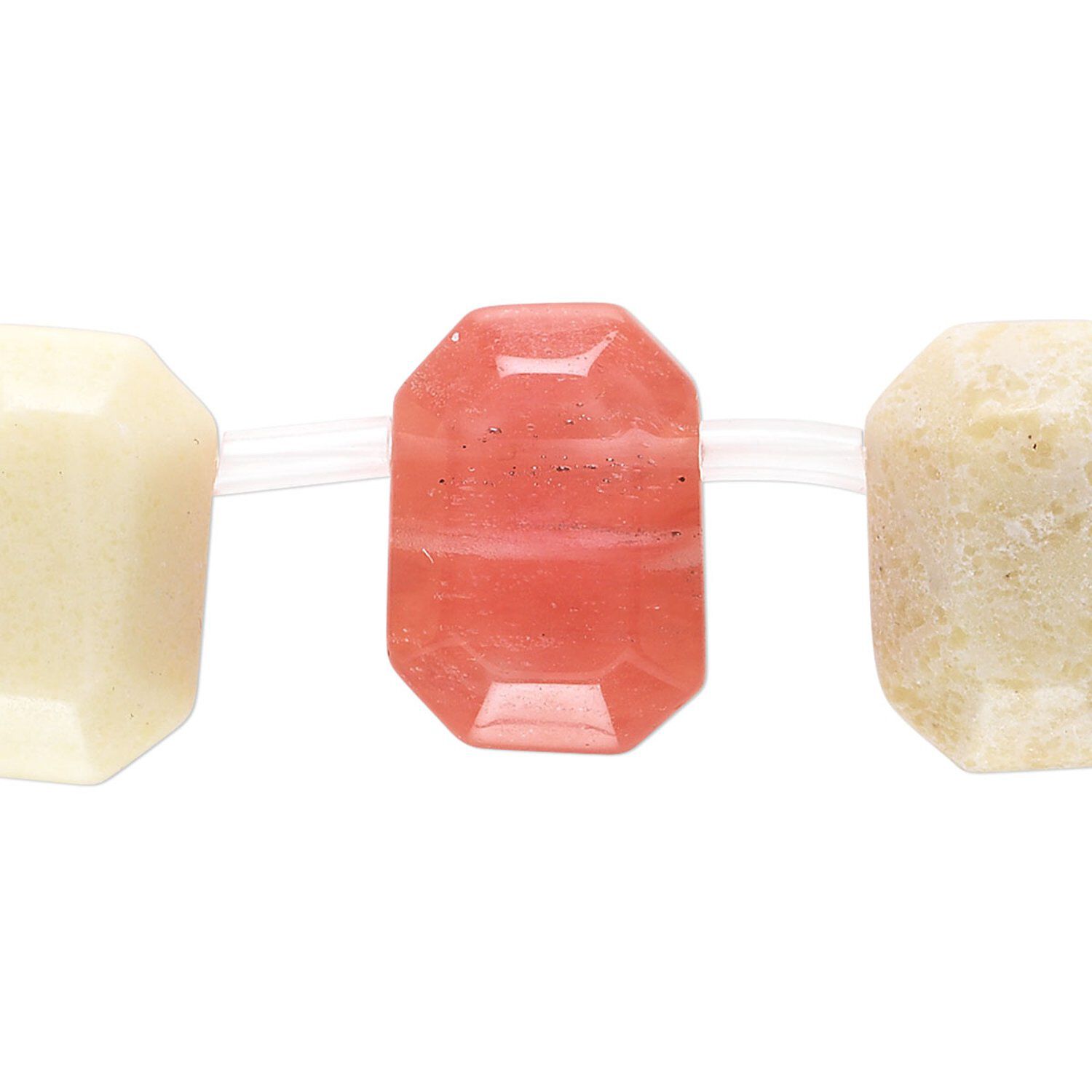 Materials can include cherry "quartz" glass, tigereye, autumn jasper and more. Beads are temporarily strung with spacers to protect against chipping. Items are made with solid color glass, which means the base color of the glass is saturated throughout the object and will not fade or rub off over time.