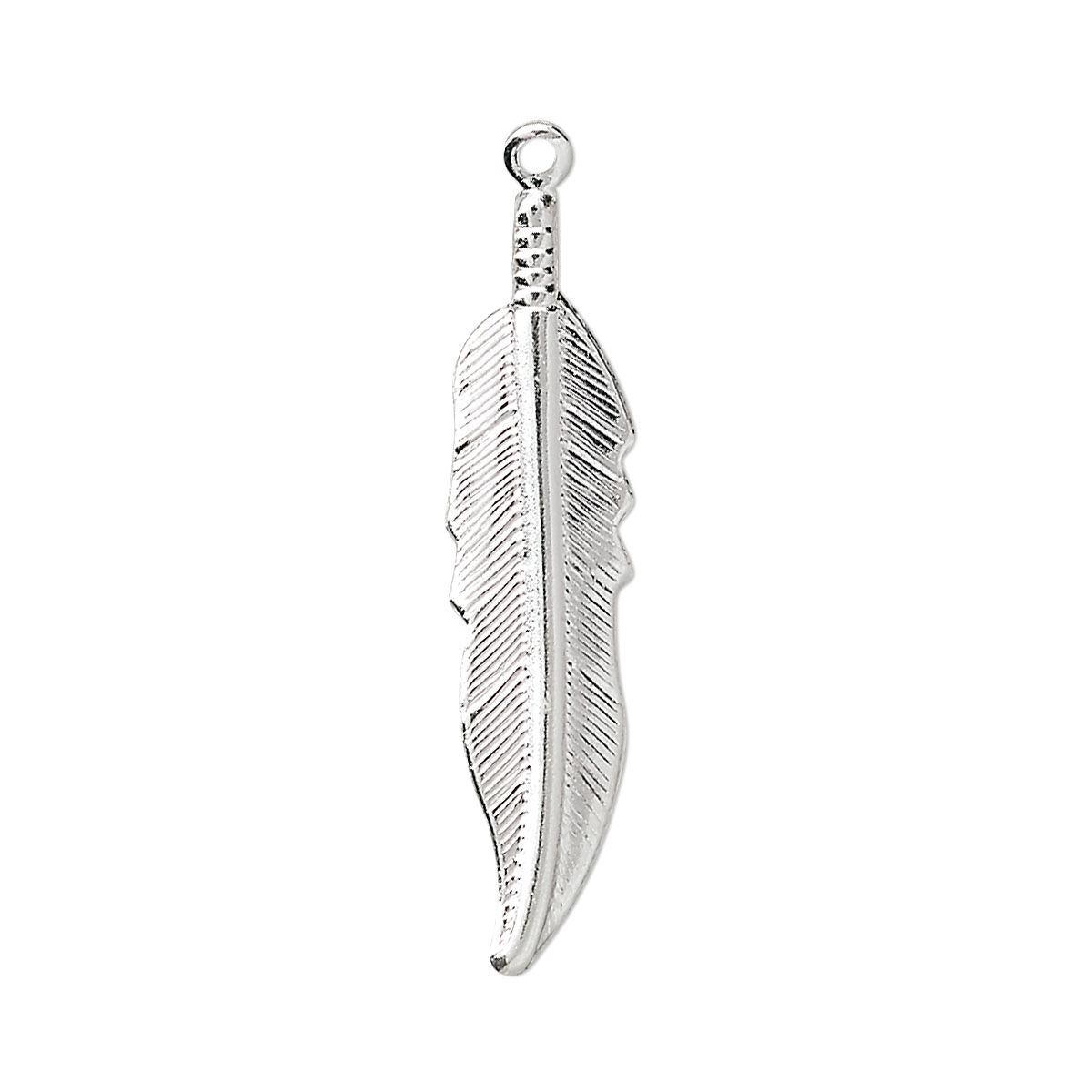 Focal, silver-plated brass, 32x7mm single-sided feather. Sold per pkg of 100.