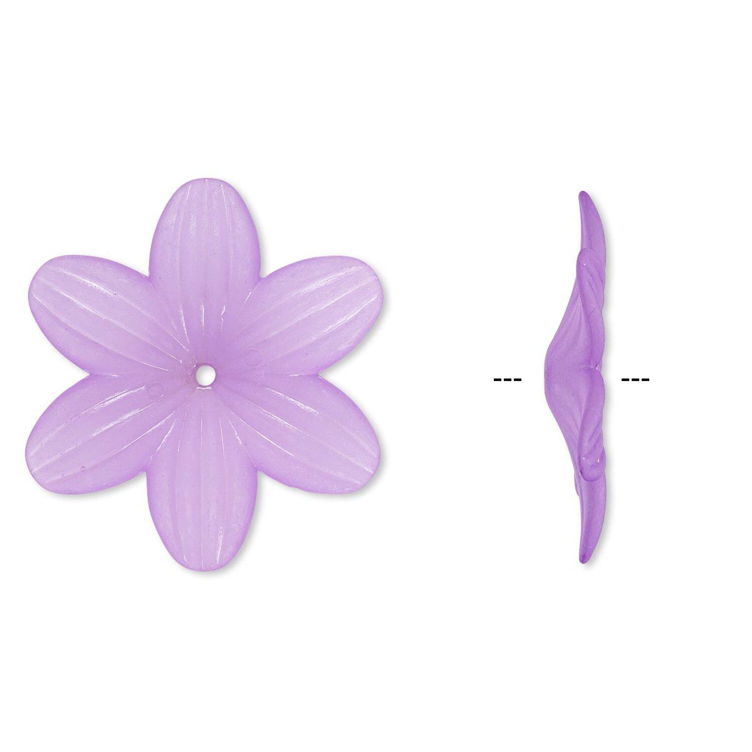 Lightweight acrylic flower with frosted, textured petals has a center stringing hole. Ideal for nature-themed jewelry designs. Colors, shapes and sizes may vary in each lot.
