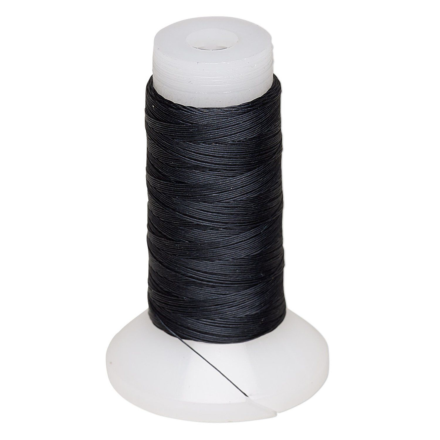 Thread, Kevlar®, black, 0.18mm diameter, size D, 15-pound test. Sold per 50-yard spool.