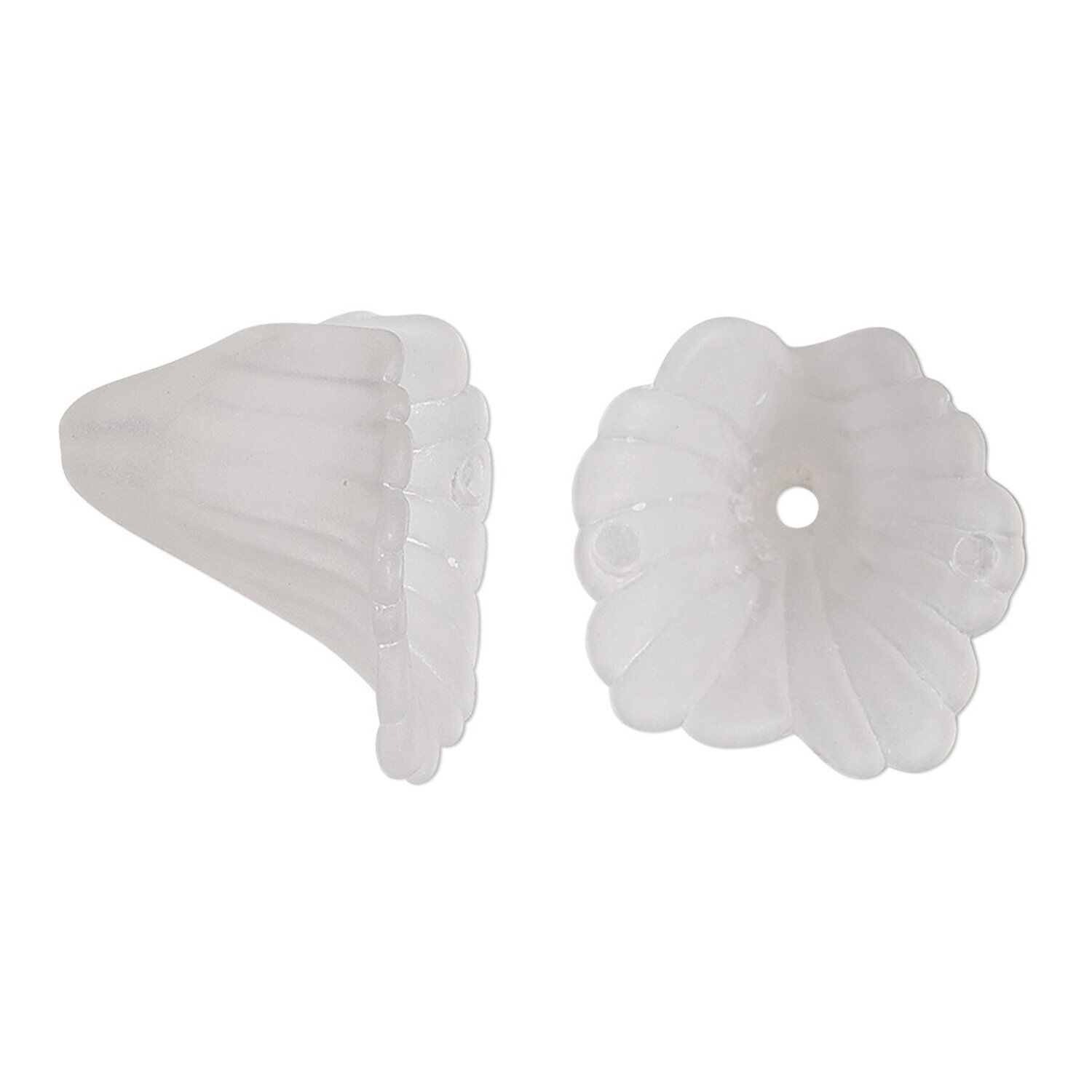 Lightweight acrylic flower with frosted, textured petals has a center stringing hole. Ideal for nature-themed jewelry designs. Colors, shapes and sizes may vary in each lot.