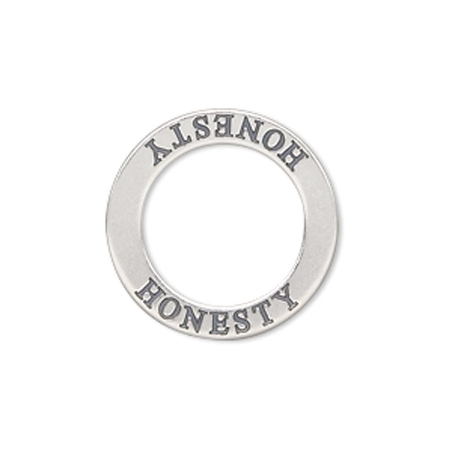 Charm, sterling silver, 22mm double-sided affirmation circle "HONESTY." Sold individually.