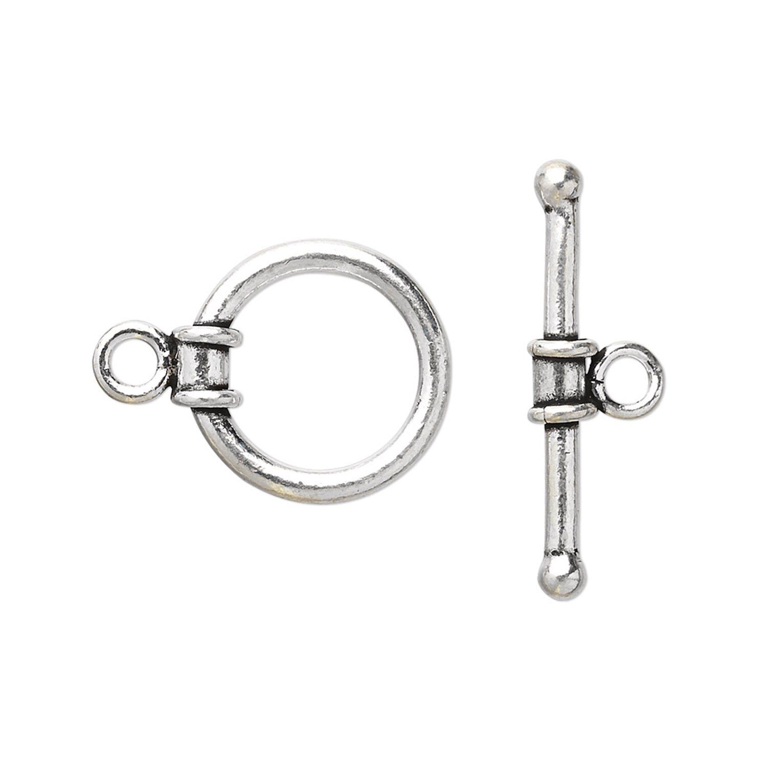 Clasp toggle 1pkg2 sterling silver, 15mm round, antiqued 1-strand