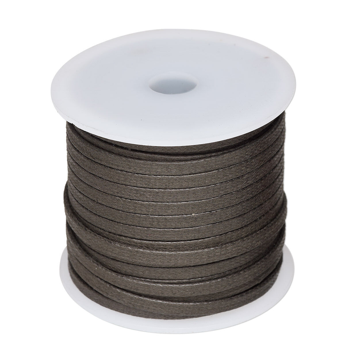 Cord, waxed cotton, brown, 4mm flat. Sold per 25-meter spool.