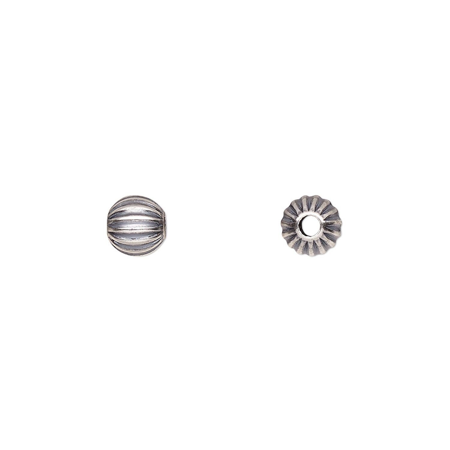 Bead, antiqued sterling silver, 6mm seamless corrugated round. Sold per pkg of 10.