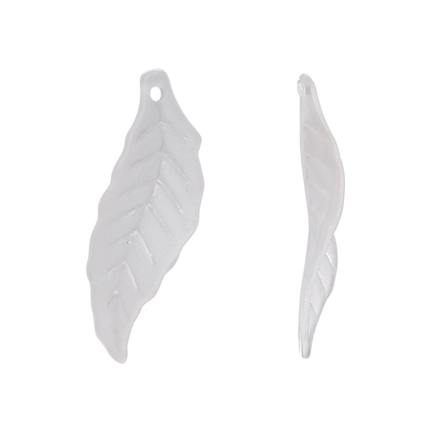 Focal, acrylic, frosted clear, 30x10mm leaf with 0.5mm hole. Sold per pkg of 100.