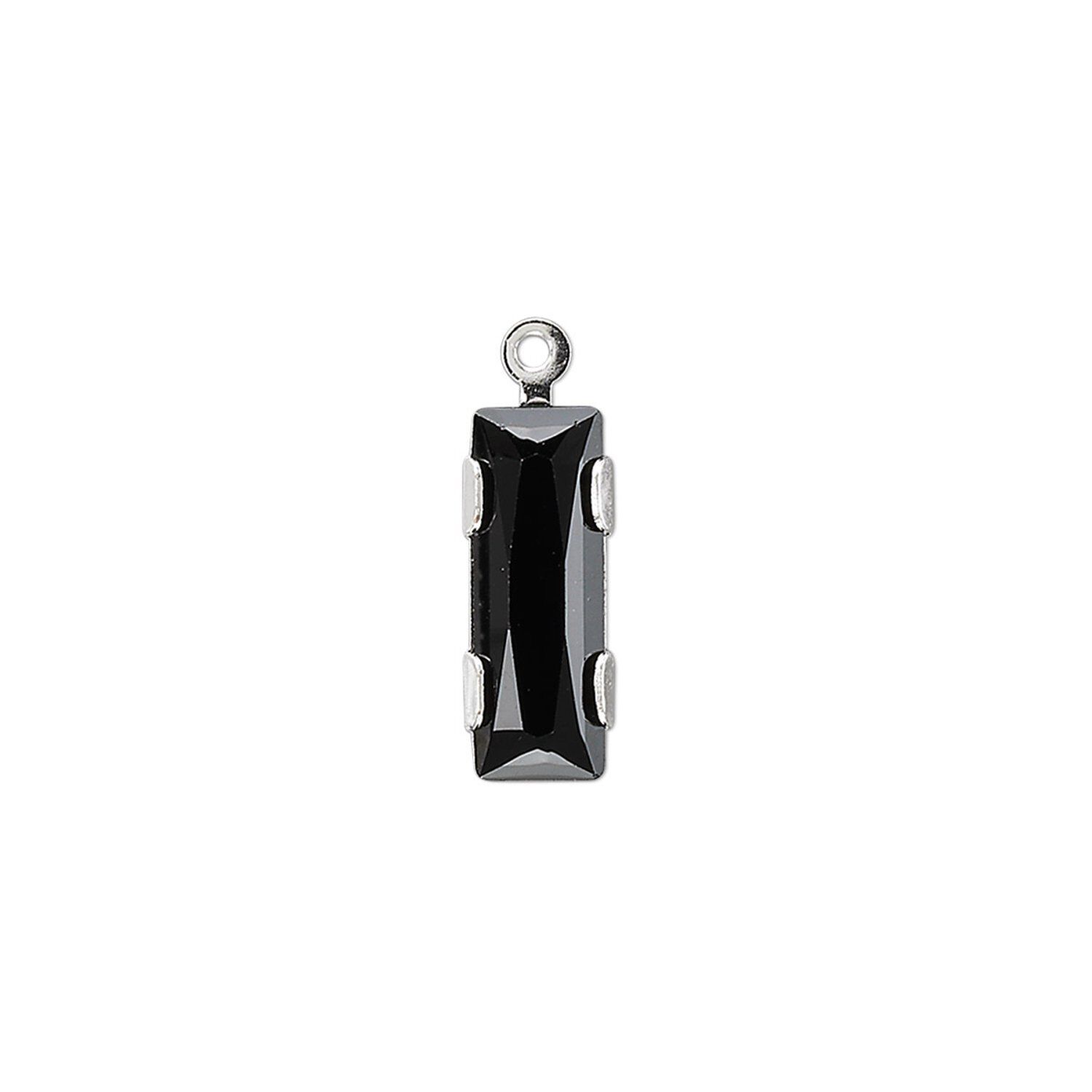 Drop 1pk jet silver plate, Crystal Passions® 19x6mm rectangle 11004