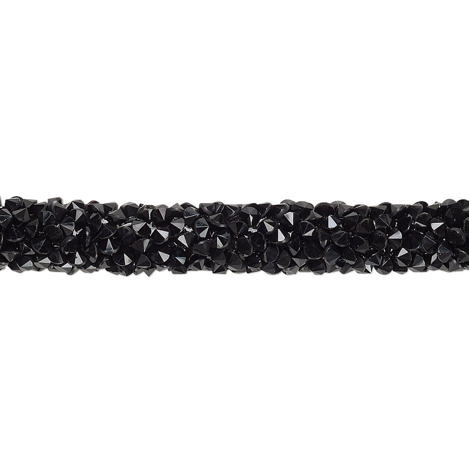 Tube, PVC plastic and glass rhinestone, opaque black, 6-7mm wide. Sold per 8-inch section.