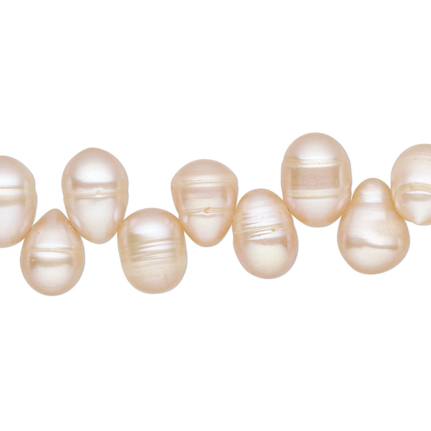 Pearl, cultured freshwater, peach, 9x7mm-14x7mm top-drilled rice, C grade, Mohs hardness 2-1/2 to 4. Sold per 15-inch strand.