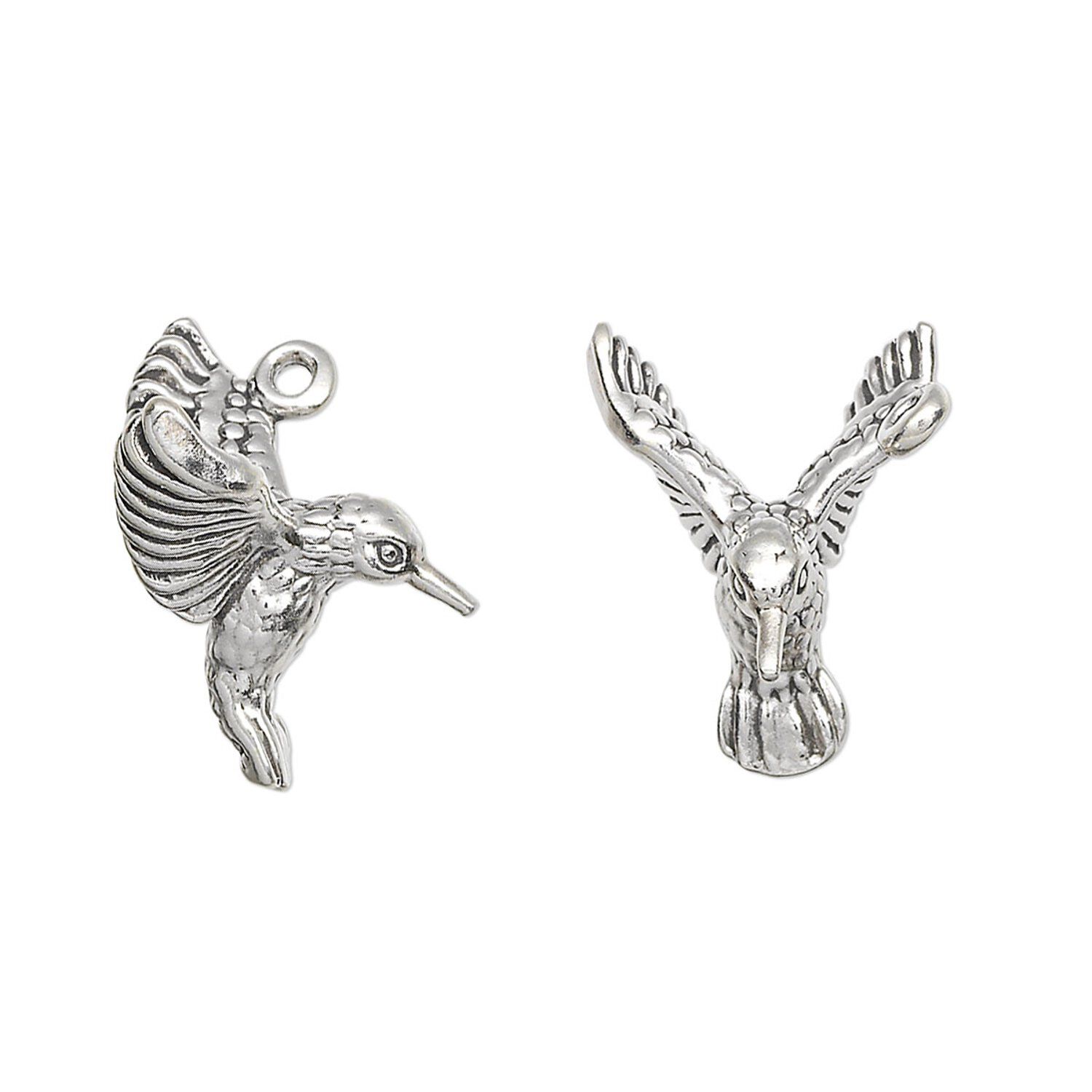 This versatile, antiqued sterling silver hummingbird charm can be used for earring components, necklaces, charm bracelets and chains, shoe charms, zipper pulls or scrapbooking.