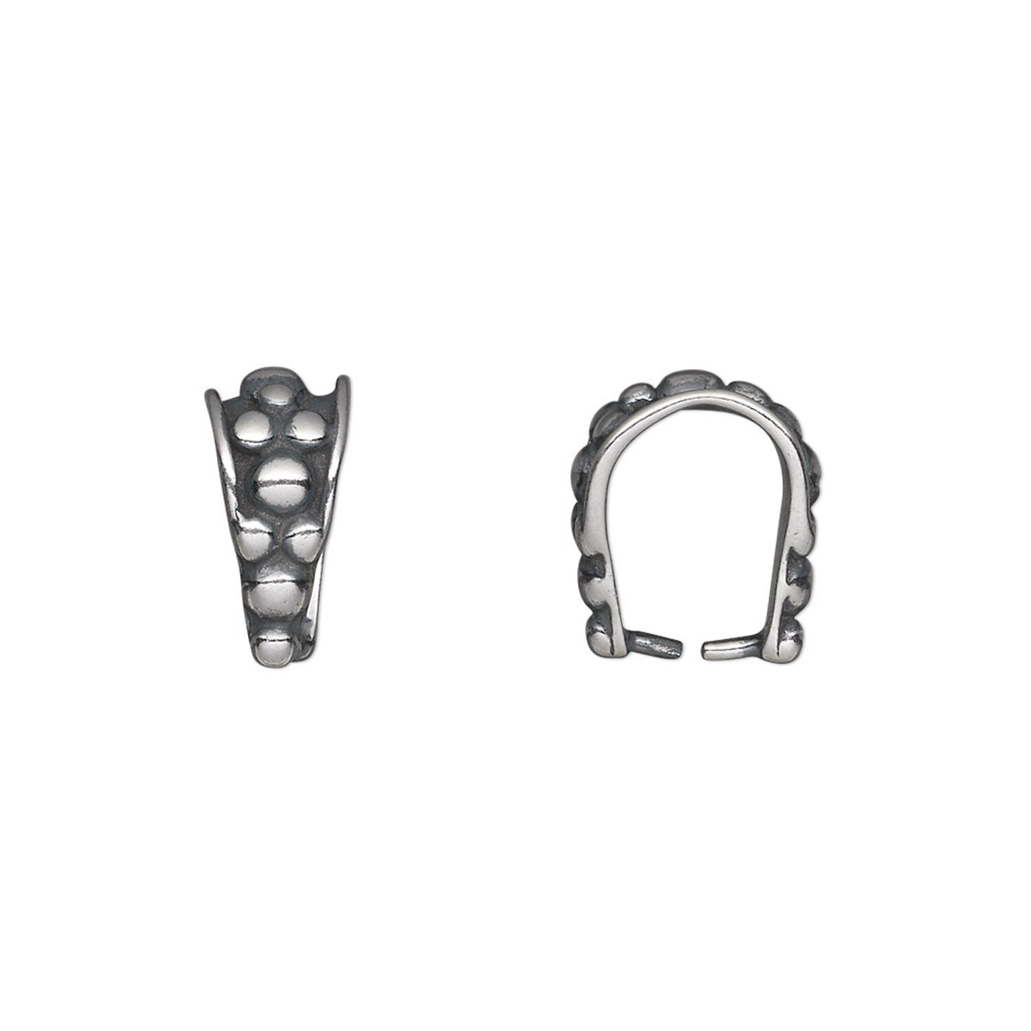 Bail, ice-pick, antiqued sterling silver, 13x6mm double-sided beaded, 10mm grip length. Sold individually.