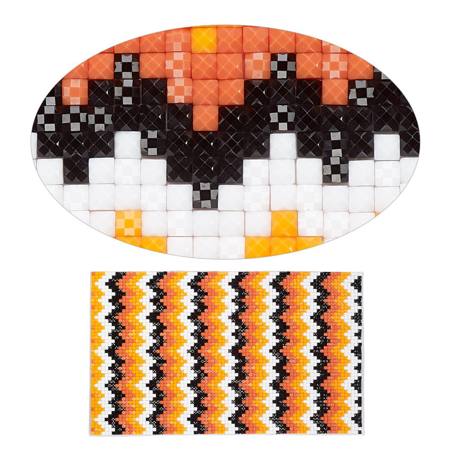 For additional design security, it is recommended to use a bit of extra adhesive. Do not touch sticky side as oils from hands will remove the adhesive. My Style Deco Art sheets are not guaranteed to be waterproof and so should not be submerged or become excessively wet. One square inch contains approximately 100 tiles. Colors include black, light orange, dark orange and white.