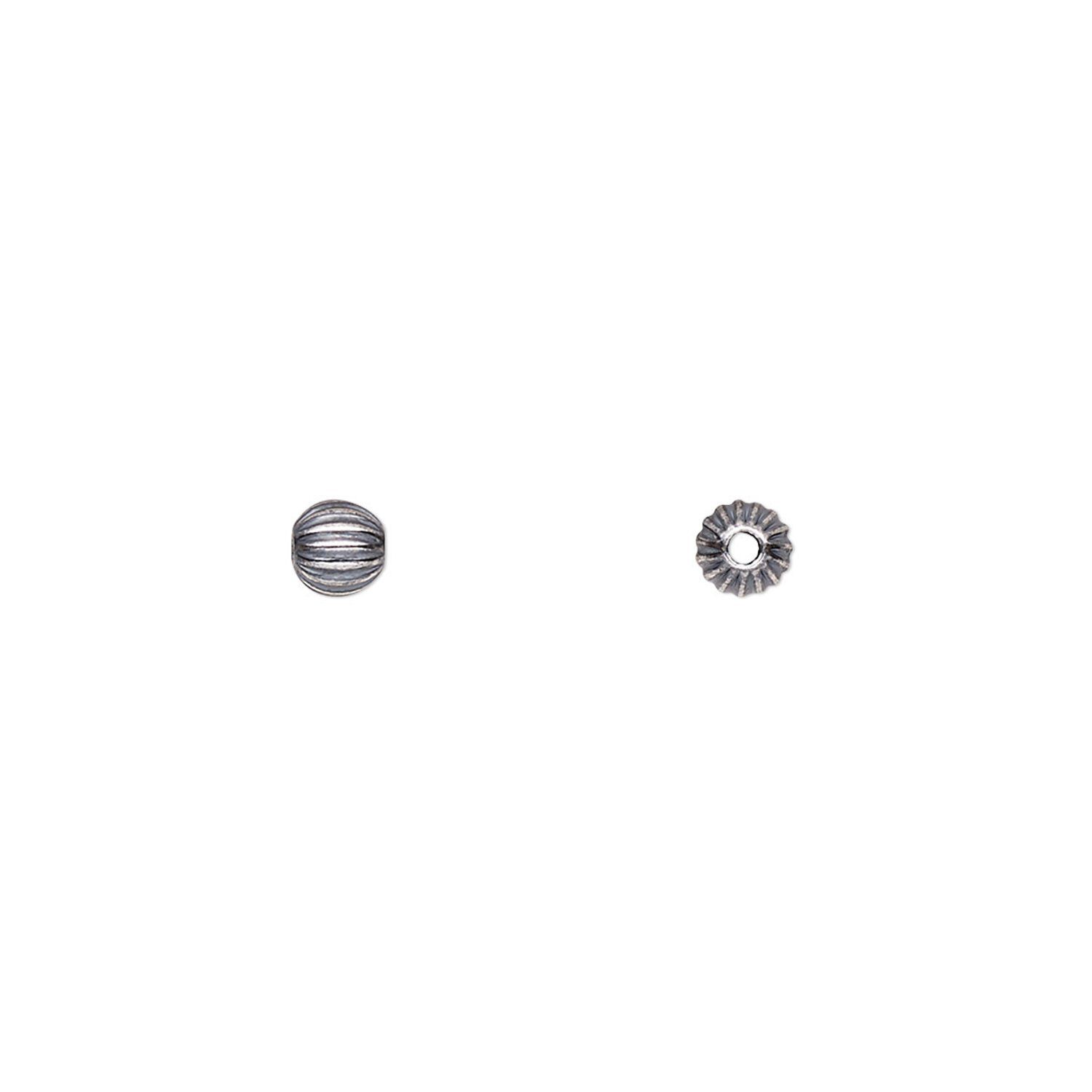 Bead, sterling silver, 4mm seamless corrugated round. Sold per pkg of 100.