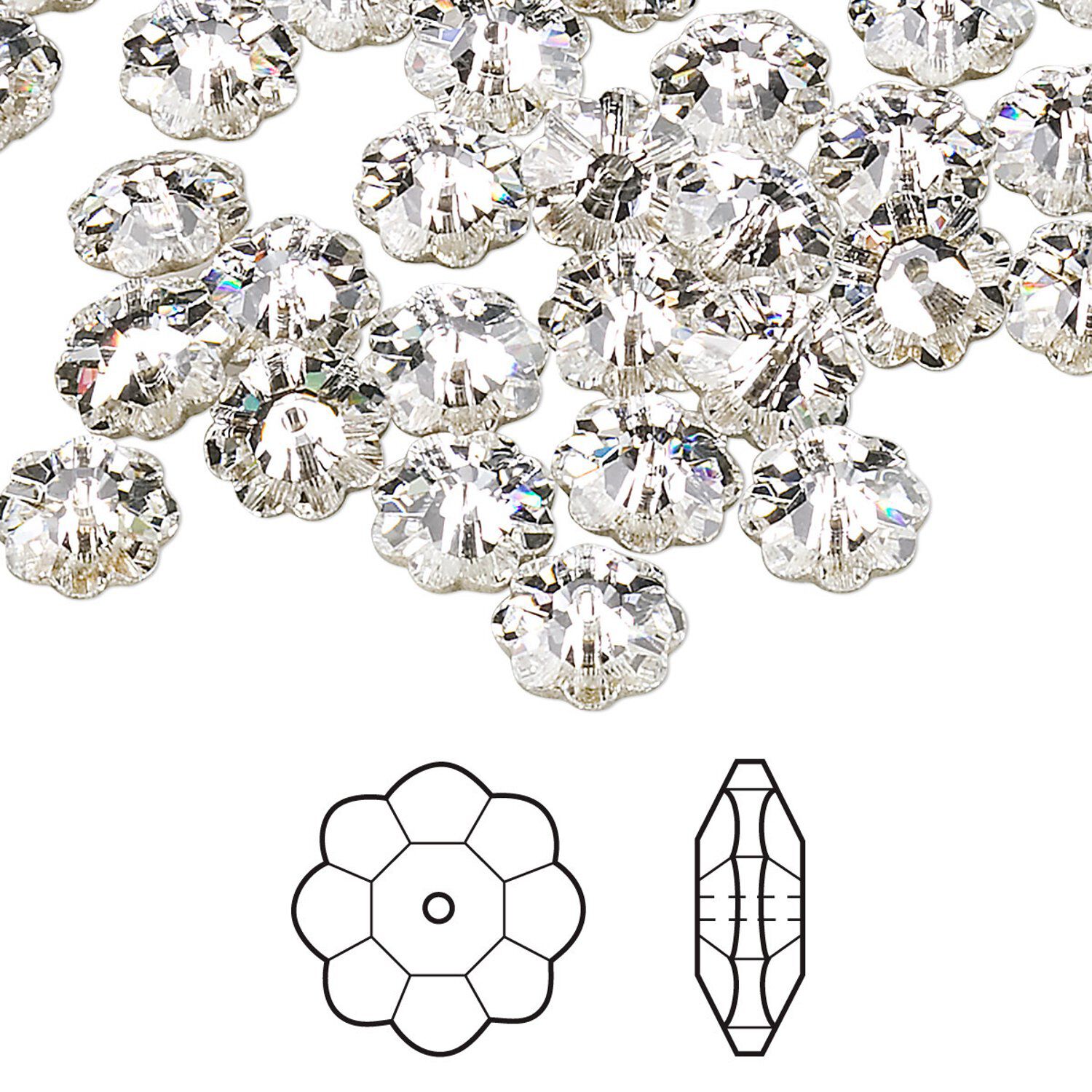 Design with Crystal Passions'® fun sew-on style. The sparkling flowers, known as "margaritas," are center-drilled for use as buttons, sew-on embellishments for purses, bags, hats, scarves, jeans, shirts ... or use as jewelry components and group together for a tiny bouquet.