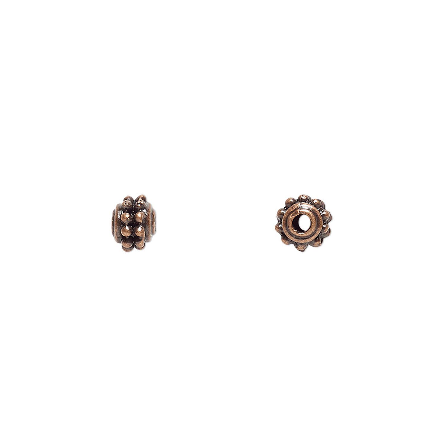 Bead, antique copper-finished "pewter" (zinc-based alloy), 5mm fancy round. Sold per pkg of 24.