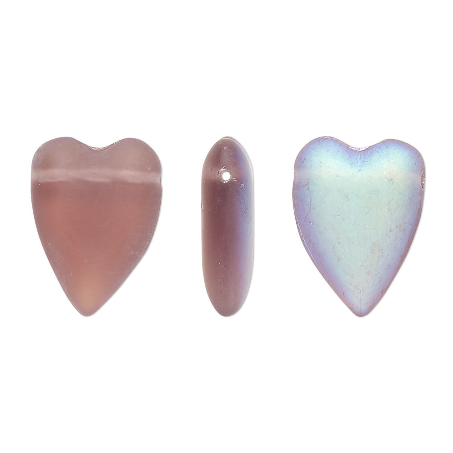 Bead, Czech pressed glass, frost purple AB, 18x13mm heart, top-drilled. Sold per 15" to 16" strand.