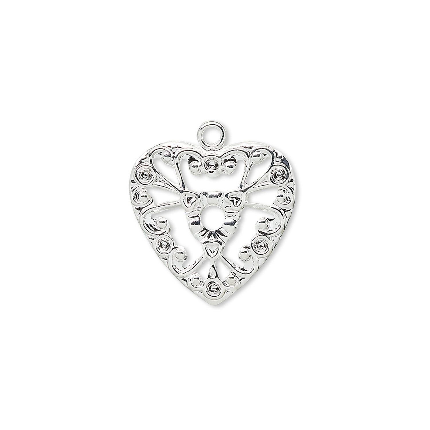 Charm, silver-plated brass, 17mm fancy heart. Sold per pkg of 10.