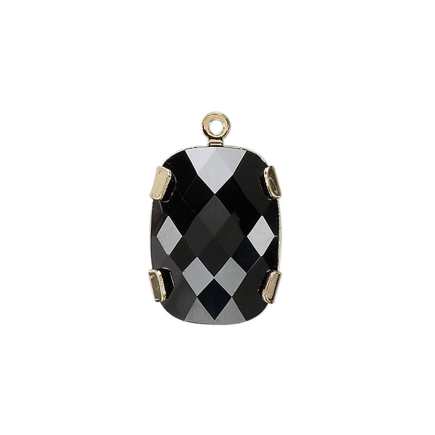 Drop 1pk jet gold plate, Crystal Passions® 18x13mm rectangle 11504