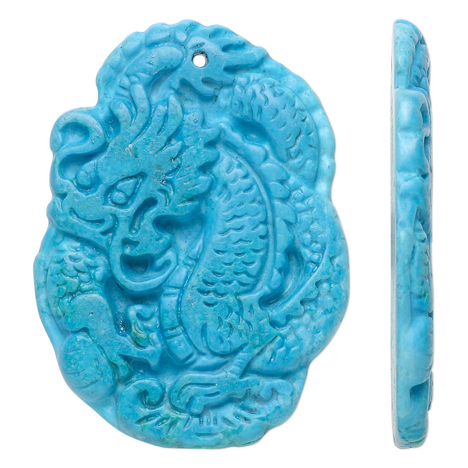 Magnesite 1pkg1, hand-cut carved dragon focal 47x36mm