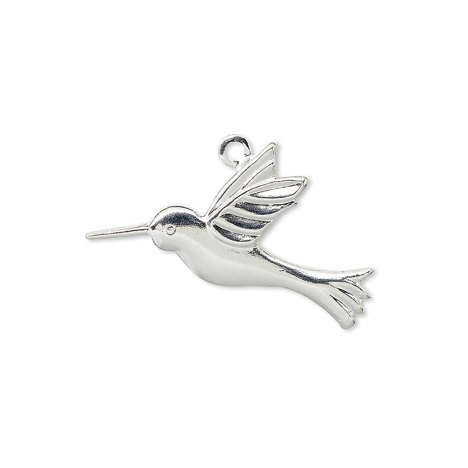 Charm, silver-plated brass, 25x19mm single-sided hummingbird. Sold per pkg of 10.