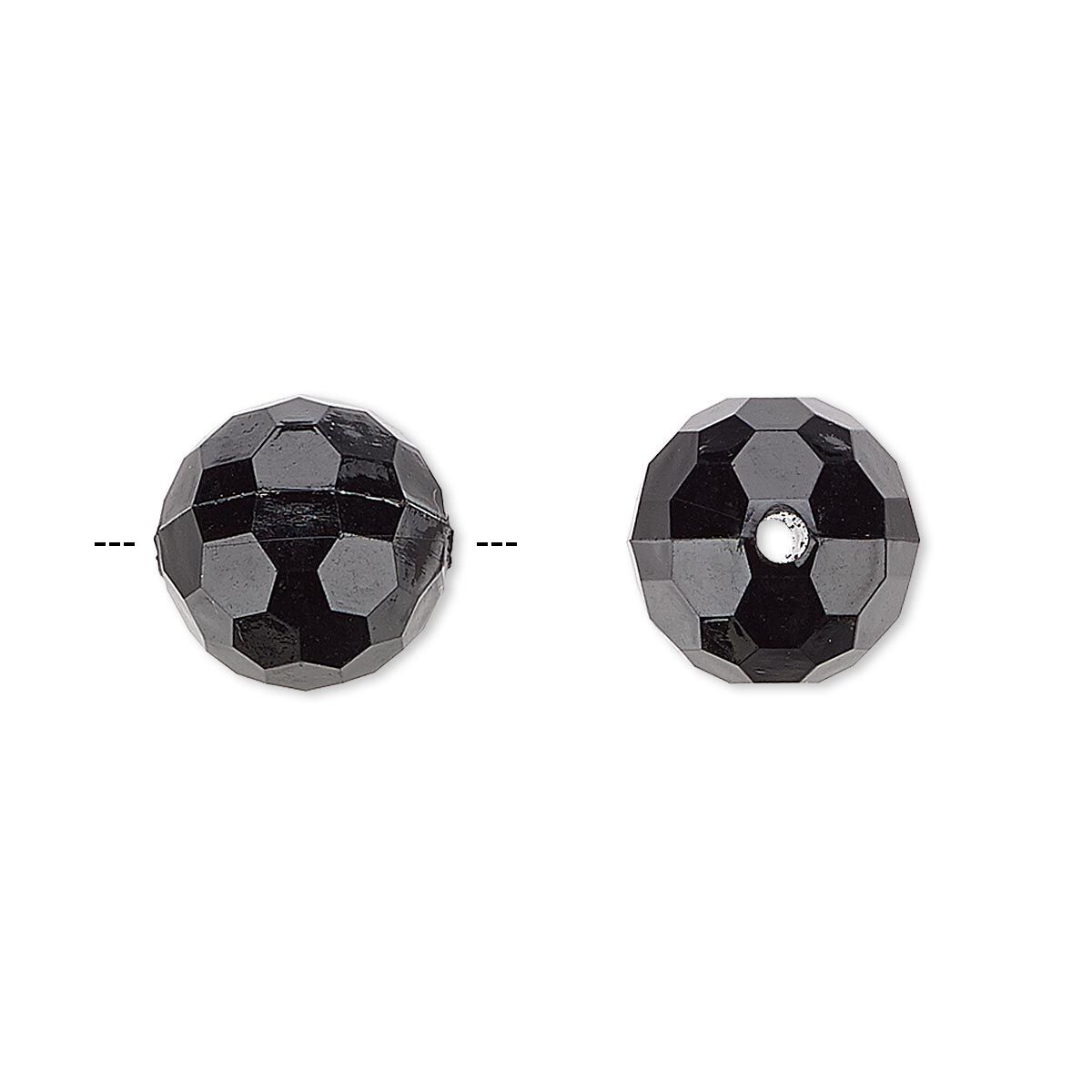 Bead, acrylic, opaque black, 12mm faceted round. Sold per 100-gram pkg, approximately 100 beads.
