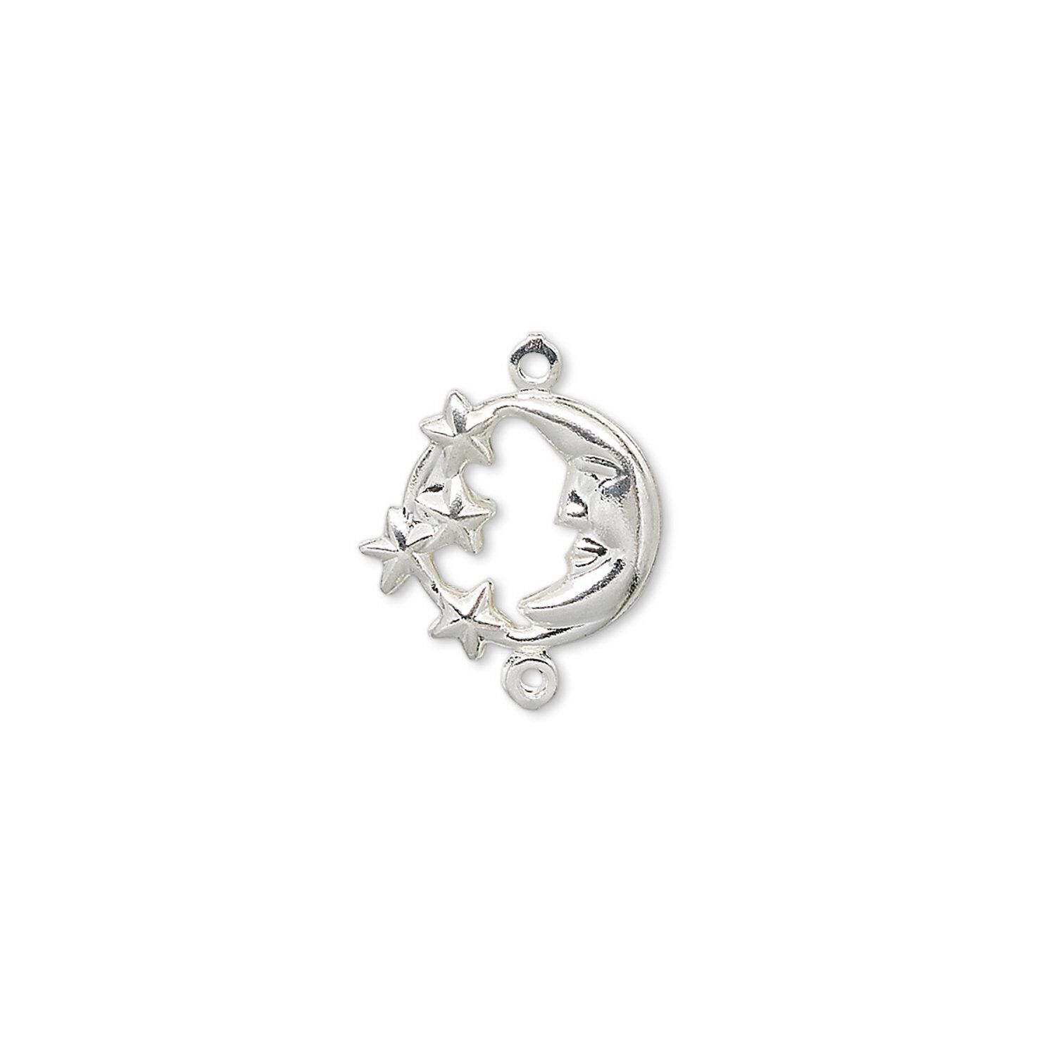 Link, silver-plated brass, 11mm moon face with stars. Sold per pkg of 10.