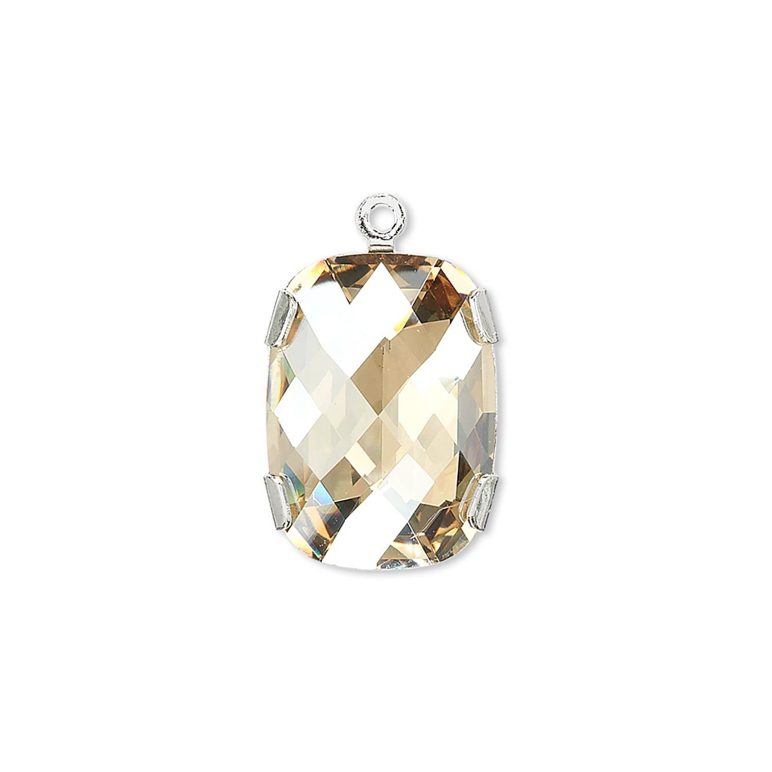 Drop 1pk crystal golden shadow silver plate, Crystal Passions® 18x13mm rectangle 11504
