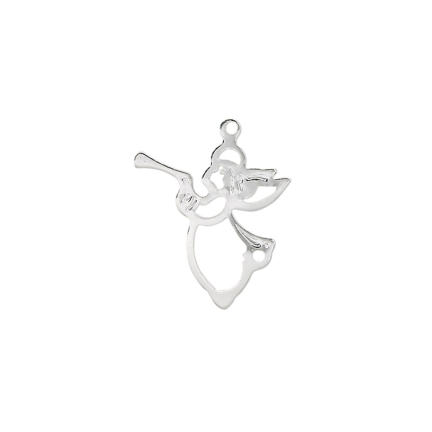 Charm, silver-plated brass, 17x16mm angel. Sold per pkg of 10.