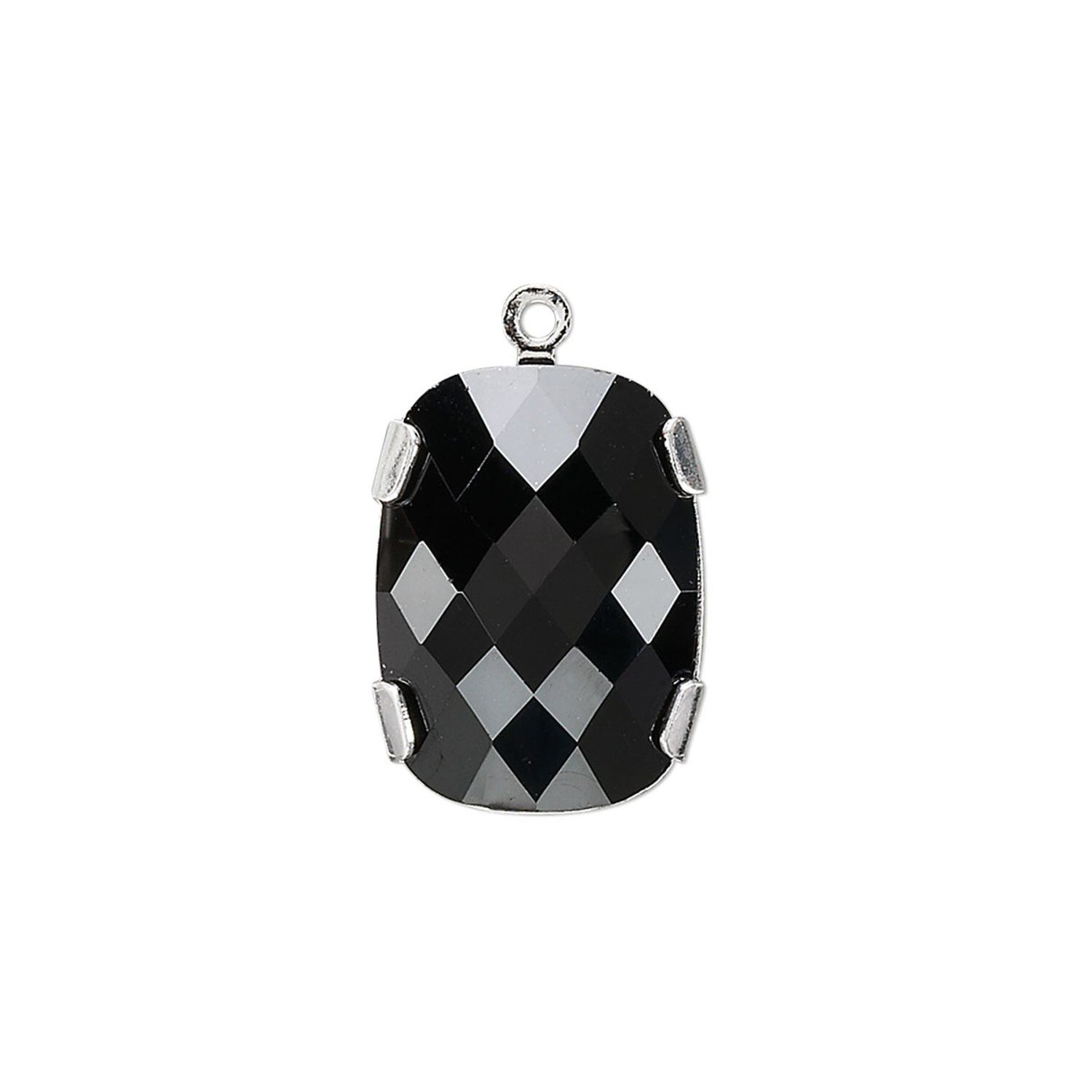Drop 1pk jet silver plate, Crystal Passions® 18x13mm rectangle 11504