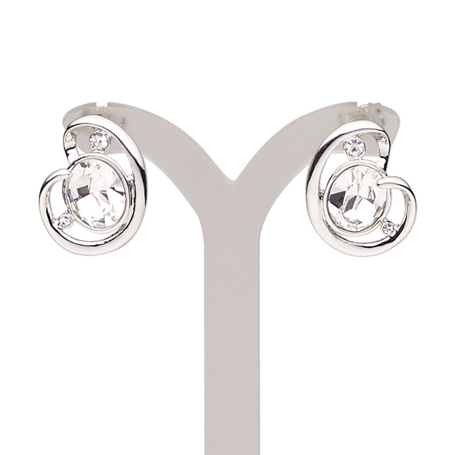 Earring, Austrian crystal / crystals / rhodium-plated brass / "pewter" (zinc-based alloy), clear and crystal clear, 19mm with post. Sold per pair.