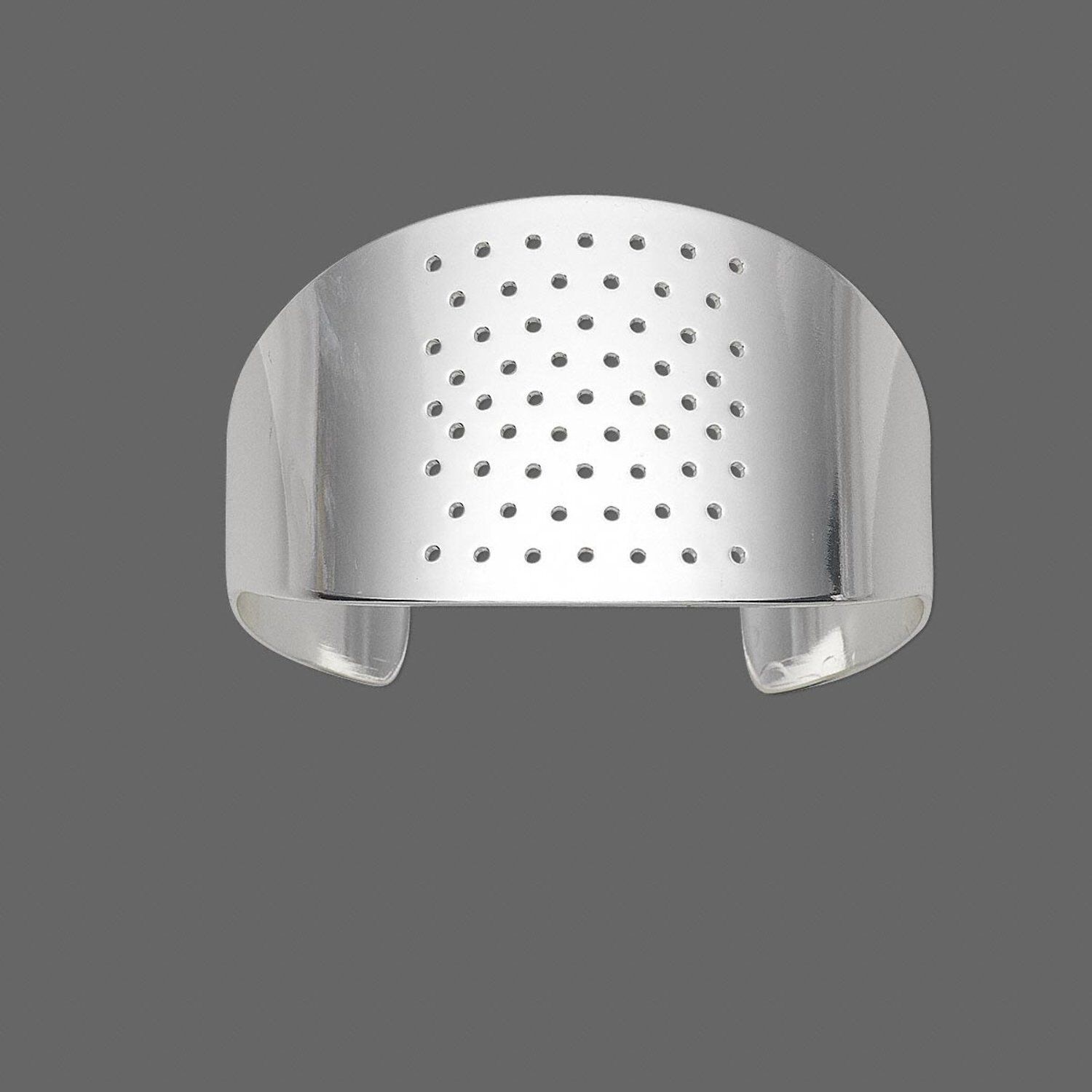 Enjoy this cuff-style bracelet component, pre-drilled with a myriad of holes, begging to be beaded. Brass bracelet component is silver-plated and easily bends to accommodate different wrist sizes.