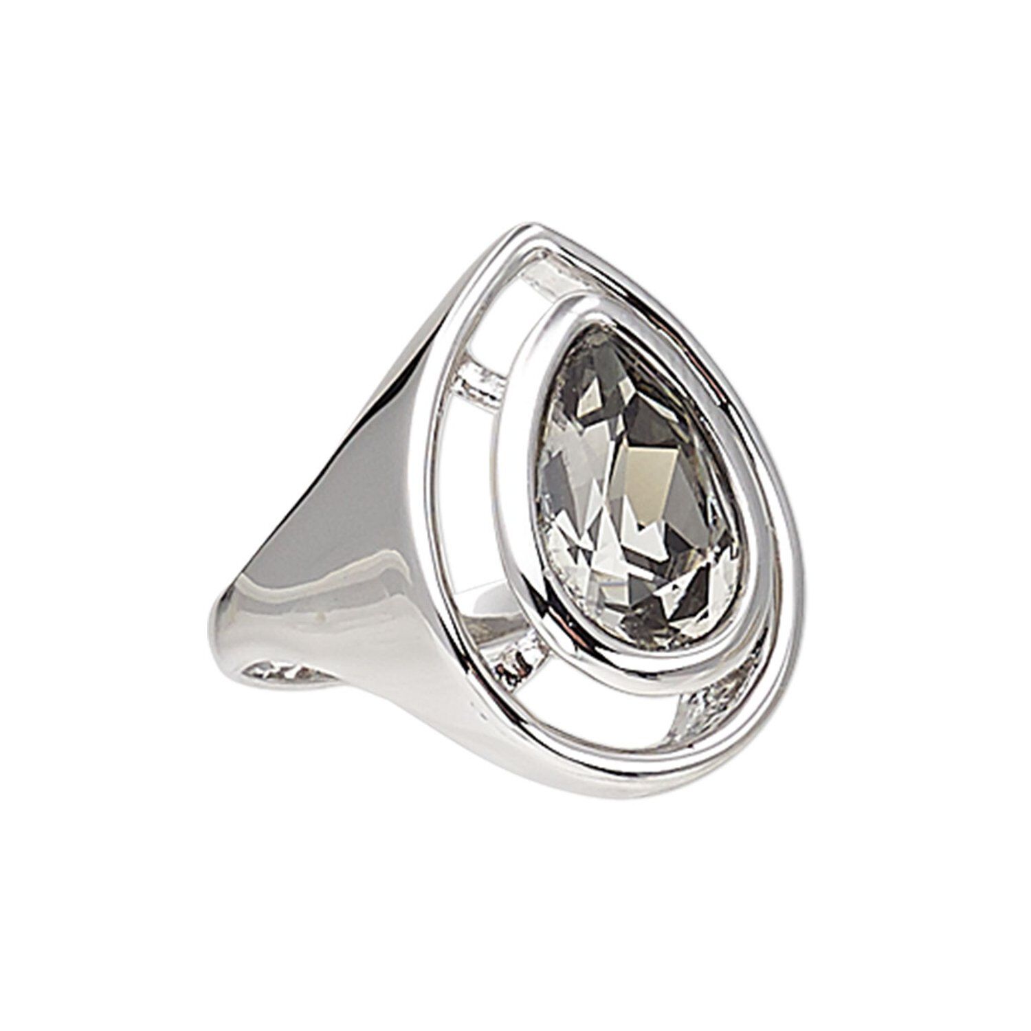Ring, crystals and rhodium-plated "pewter" (zinc-based alloy), peridot, 25x21mm teardrop, size 8. Sold individually.