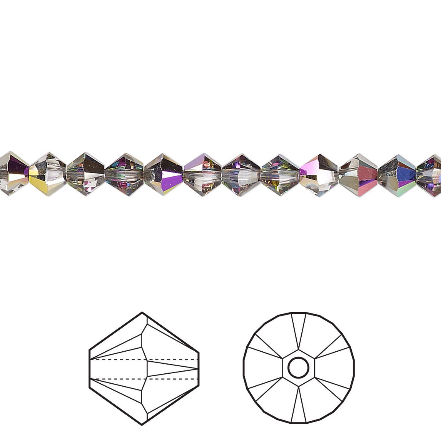 Electra is saturated with multi-hued glints of blue, pink, purple, green and silver to exude shades of dramatic brilliance. To create this exclusive product, crystals are shipped to a third-party vendor where they receive a transparent custom coating to add shimmering translucent color. This process results in a beautiful range of reflective colors that may vary from bead to bead. The electra coating is sensitive to friction and can be scratched or marred with little pressure. Resembling the flash of a diamond, the revolutionary 5328 bicone bead offers: