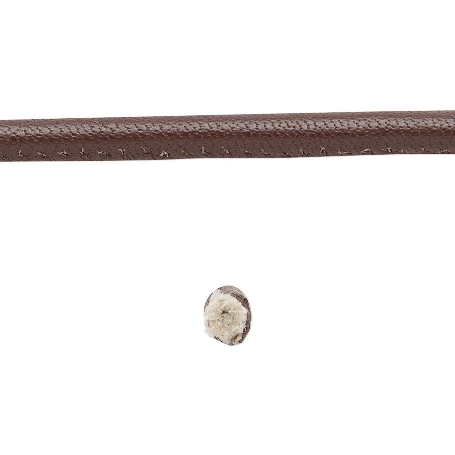 Cord, leather and cotton (dyed), brown, 4mm zigzag-stitched round. Sold per 5-yard section.