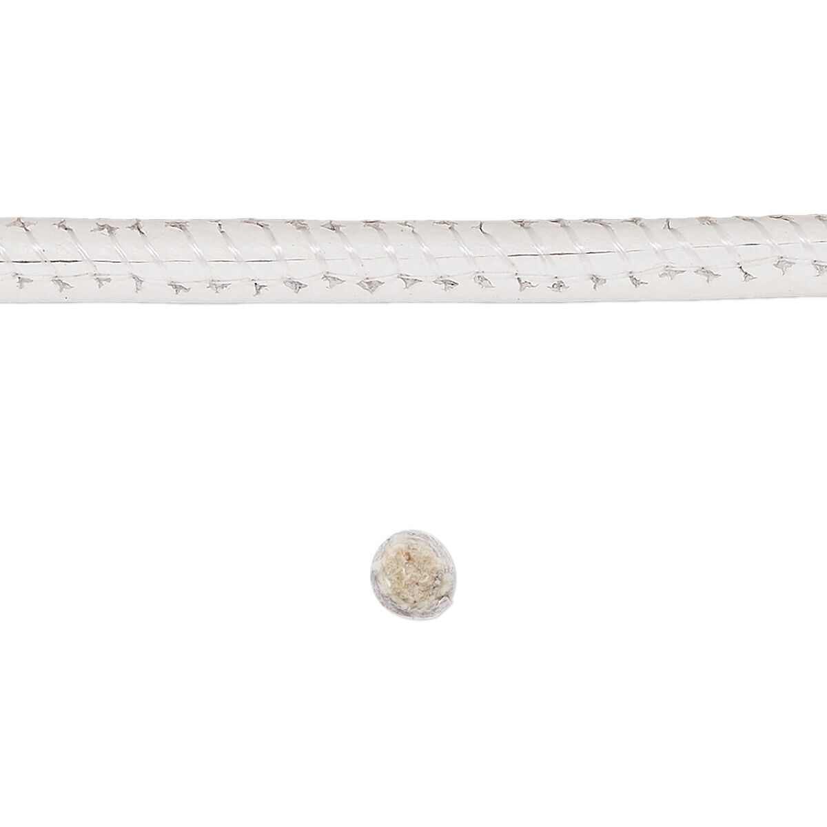 Cord, leather and cotton (dyed), white, 4mm zigzag-stitched round. Sold per 1-yard section.