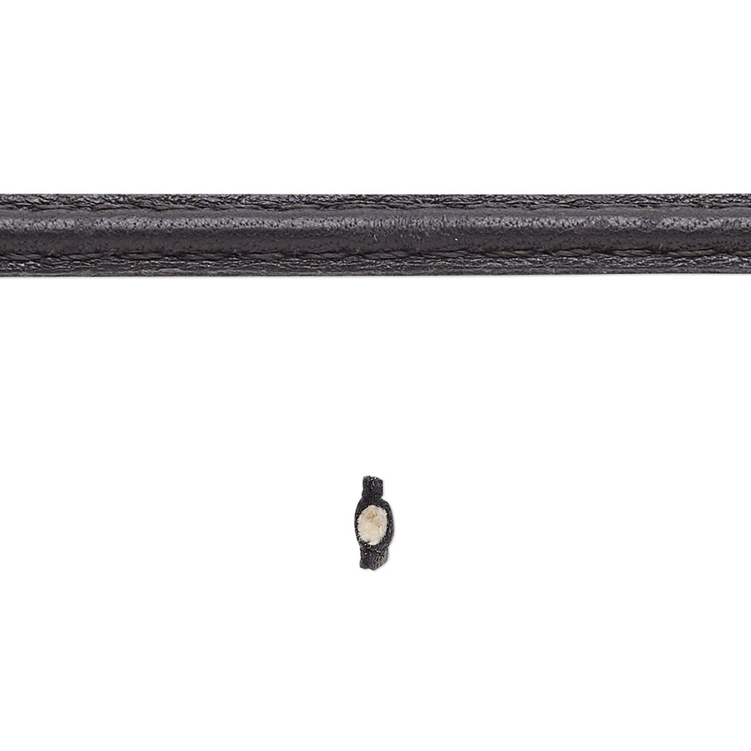 Cord, leather and cotton (dyed), black, 5-6mm double-stitched flat. Sold per 5-yard section.