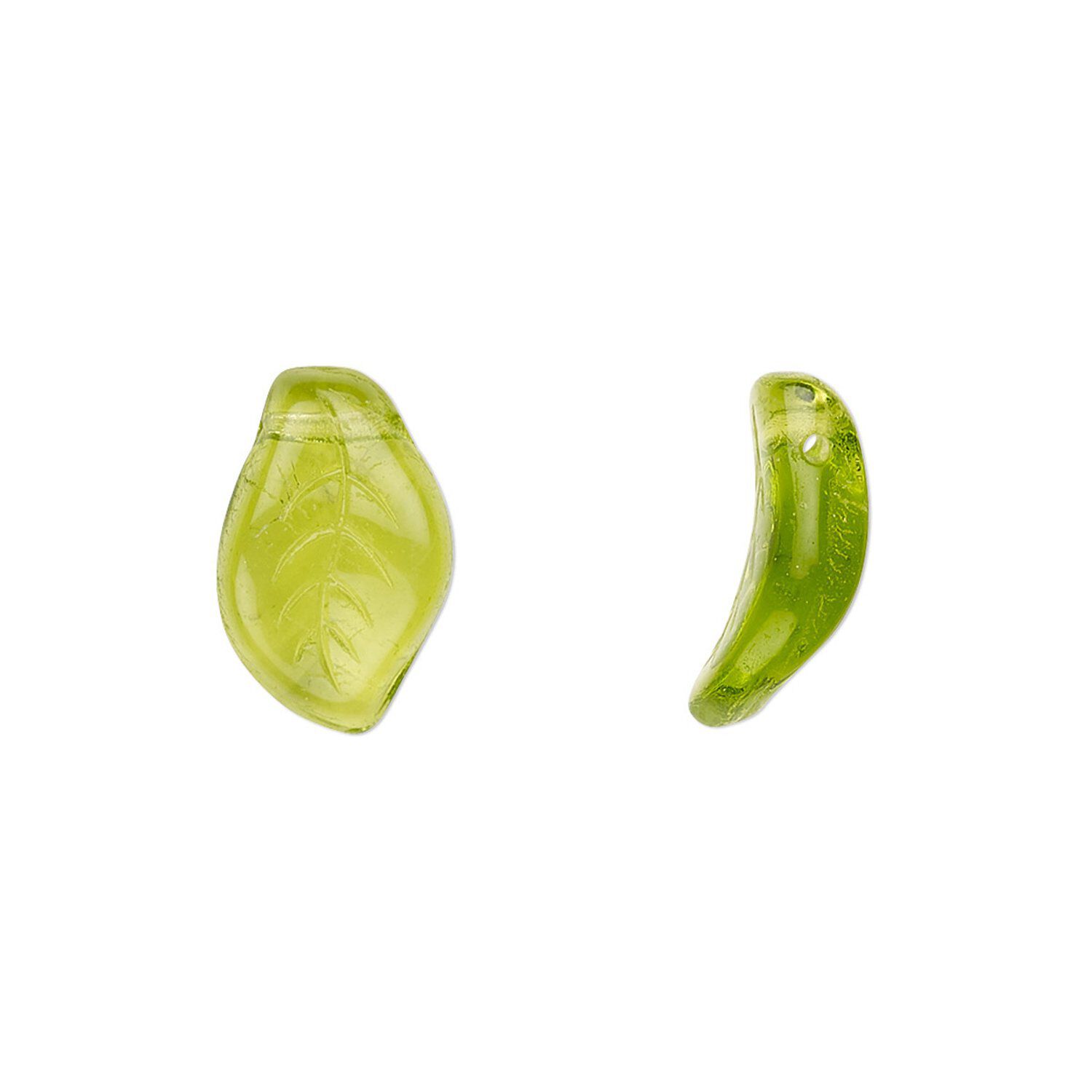 Czech pressed glass leaf beads with top-drilled design for greater beading versatility. Size and shape may vary slightly and color may vary from dye lot to dye lot. Items are made with solid color glass, which means the base color of the glass is saturated throughout the object and will not fade or rub off over time.