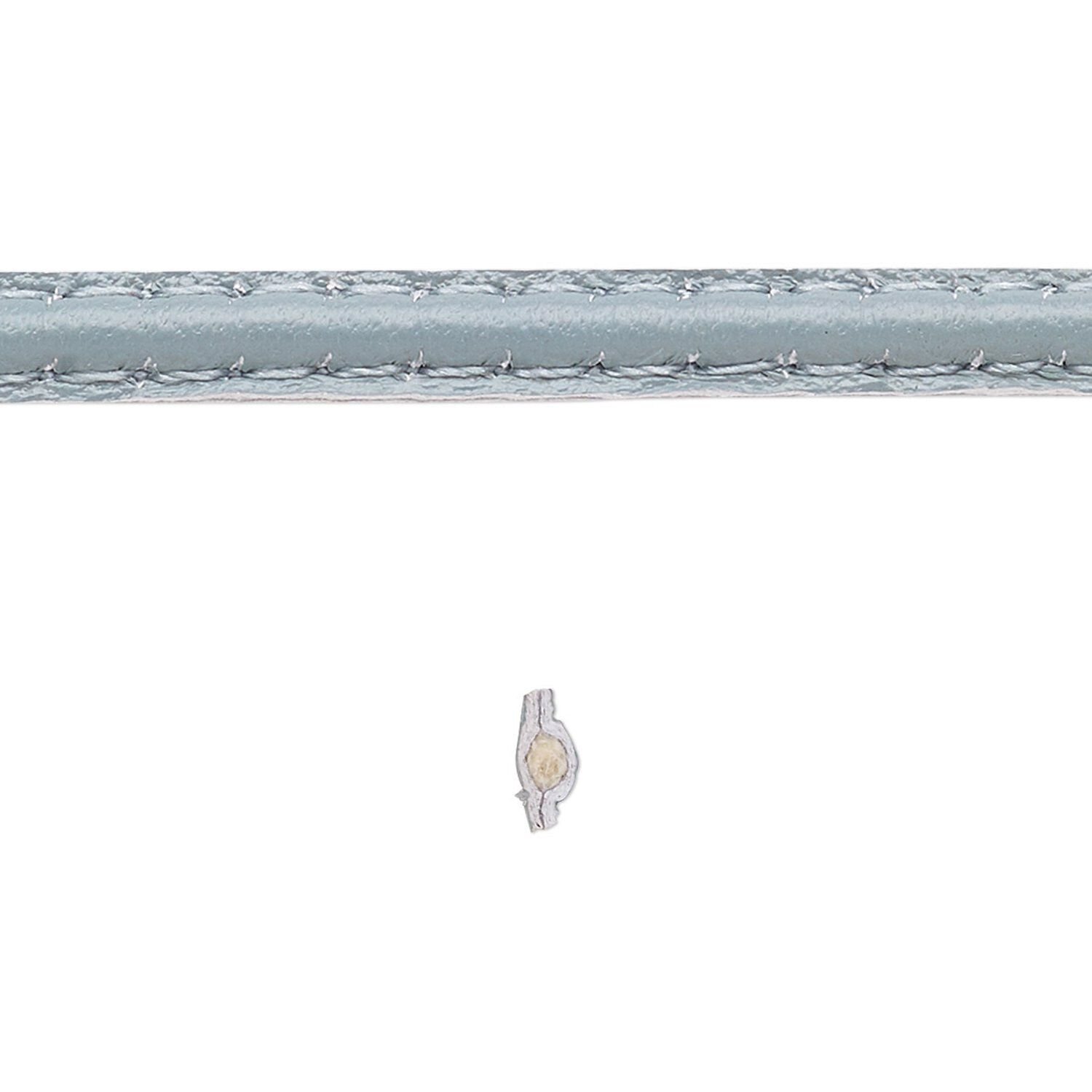 Cord, leather and cotton (dyed), grey, 5-6mm double-stitched flat. Sold per 5-yard section.