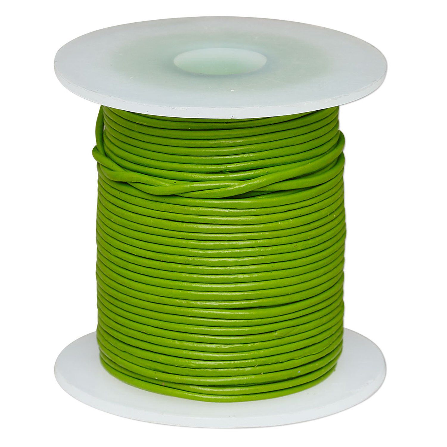 Dyed leather cord featuring a smooth round cross section is available in a bright and cheerful green! No longer are you limited to designing with only "natural" colors of leather. Testing for colorfastness is recommended. Color may vary from dye lot to dye lot. Due to the manufacturing process, cord may be in 2 or 3 sections.