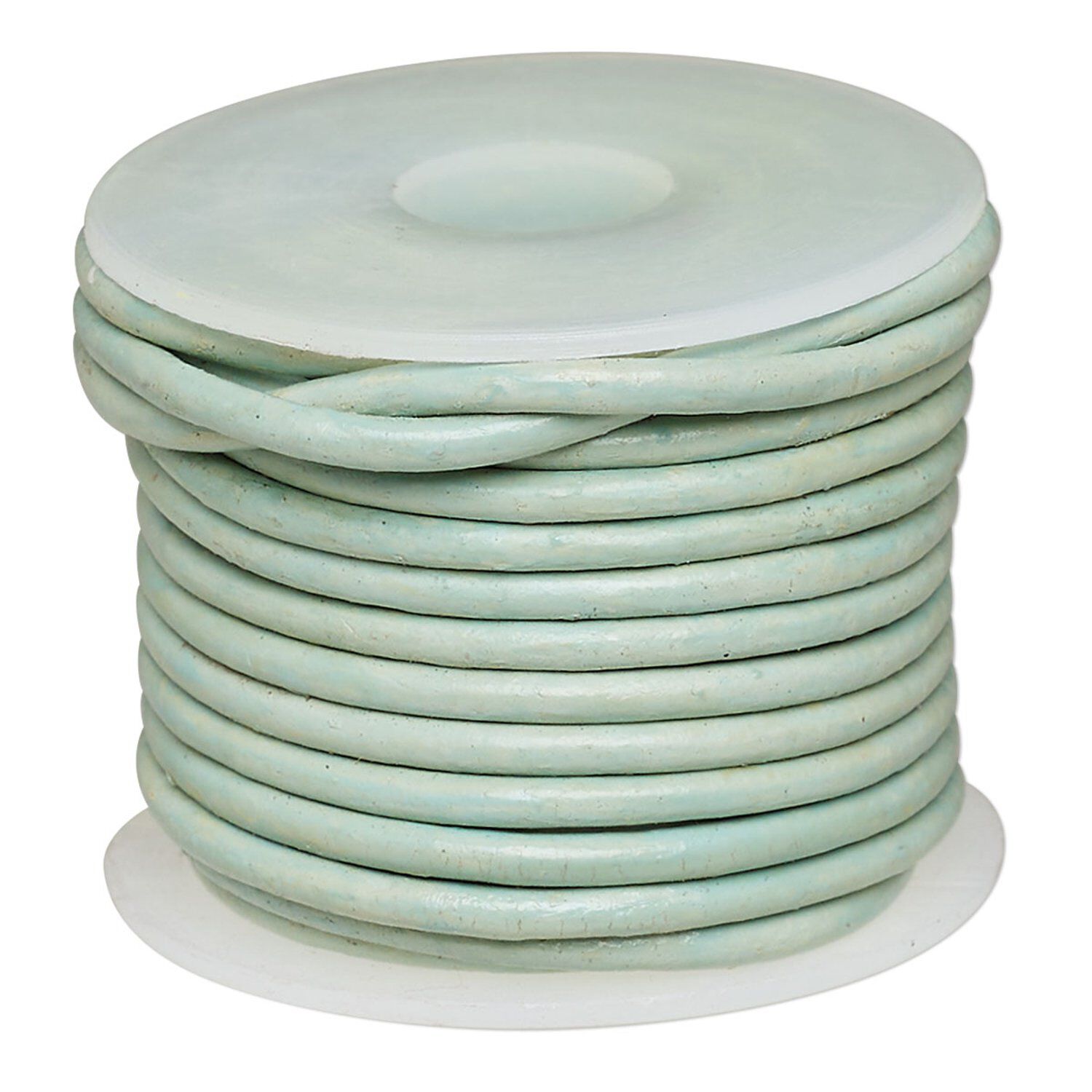 Dyed leather cord featuring a smooth round cross section is available in a bright and cheerful sky blue! No longer are you limited to designing with only "natural" colors of leather. Testing for colorfastness is recommended. Color may vary from dye lot to dye lot.