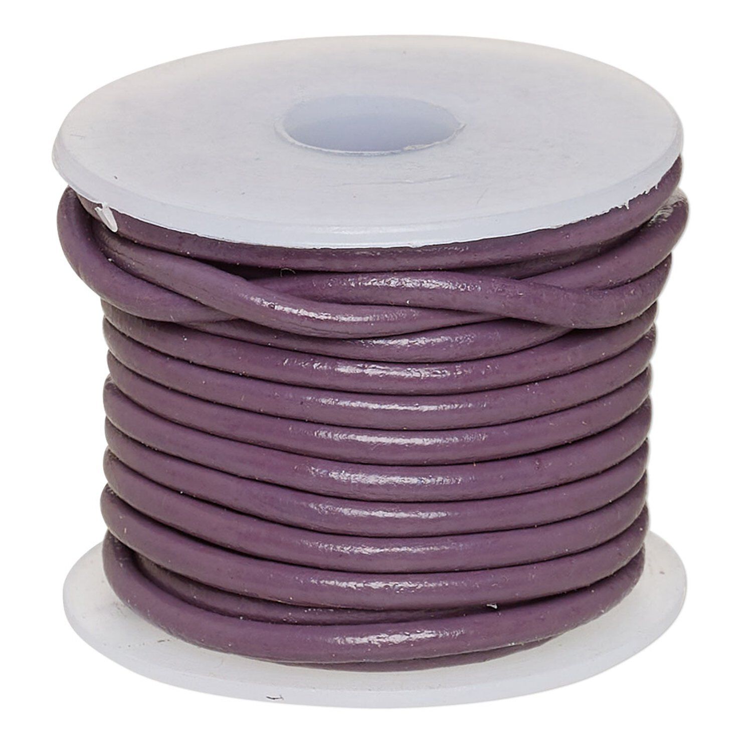 Cord, leather (dyed), purple, 2-2.2mm round. Sold per 5-yard spool.