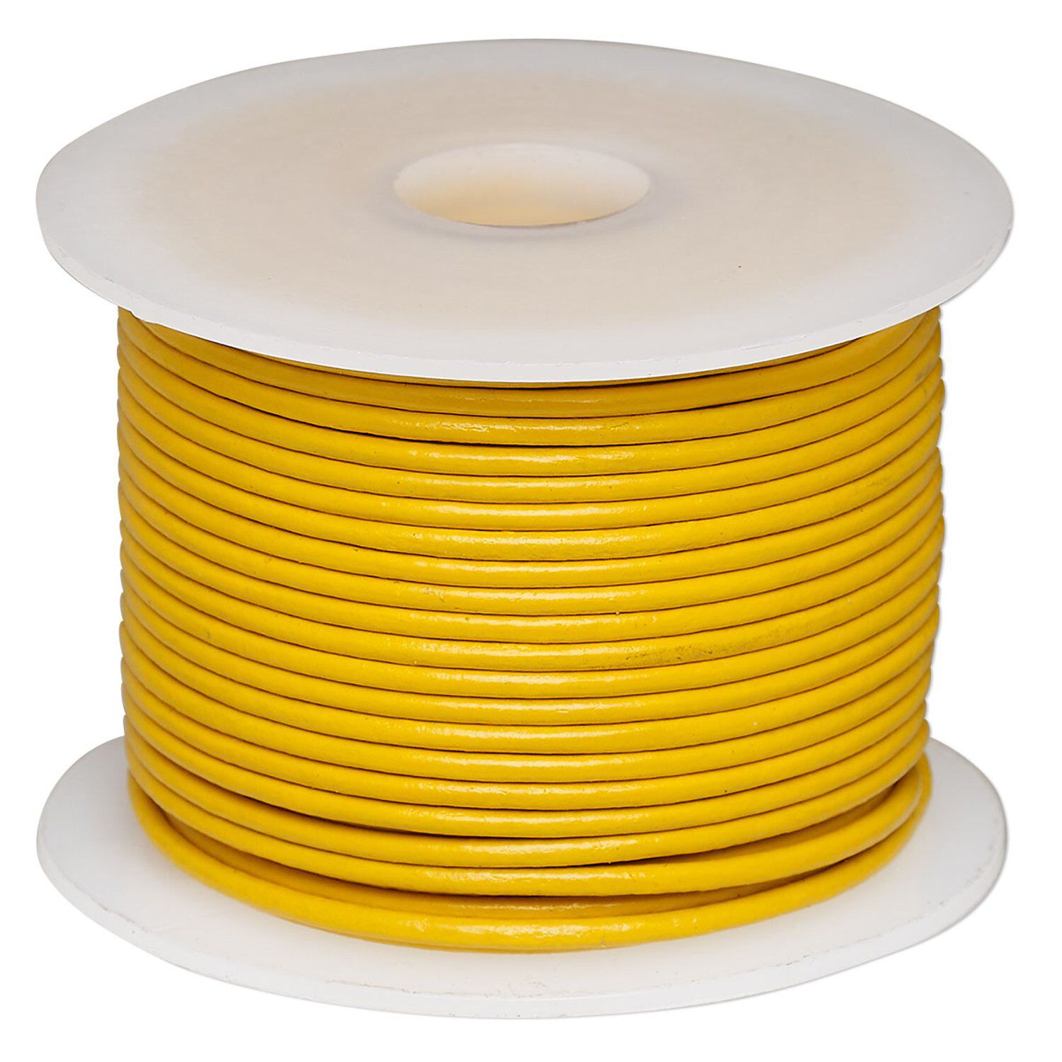 Cord, leather (dyed), yellow, 1.4-1.6mm round. Sold per 25-yard spool.