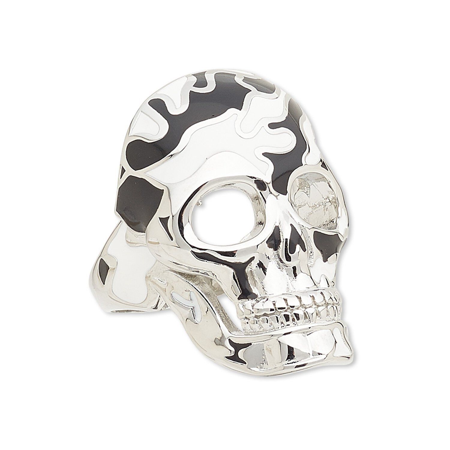 Ring, Avant-Garde Jewelry Collection, enamel and imitation rhodium-plated brass, black and white, 33x22mm skull, size 8-1/2. Sold individually.