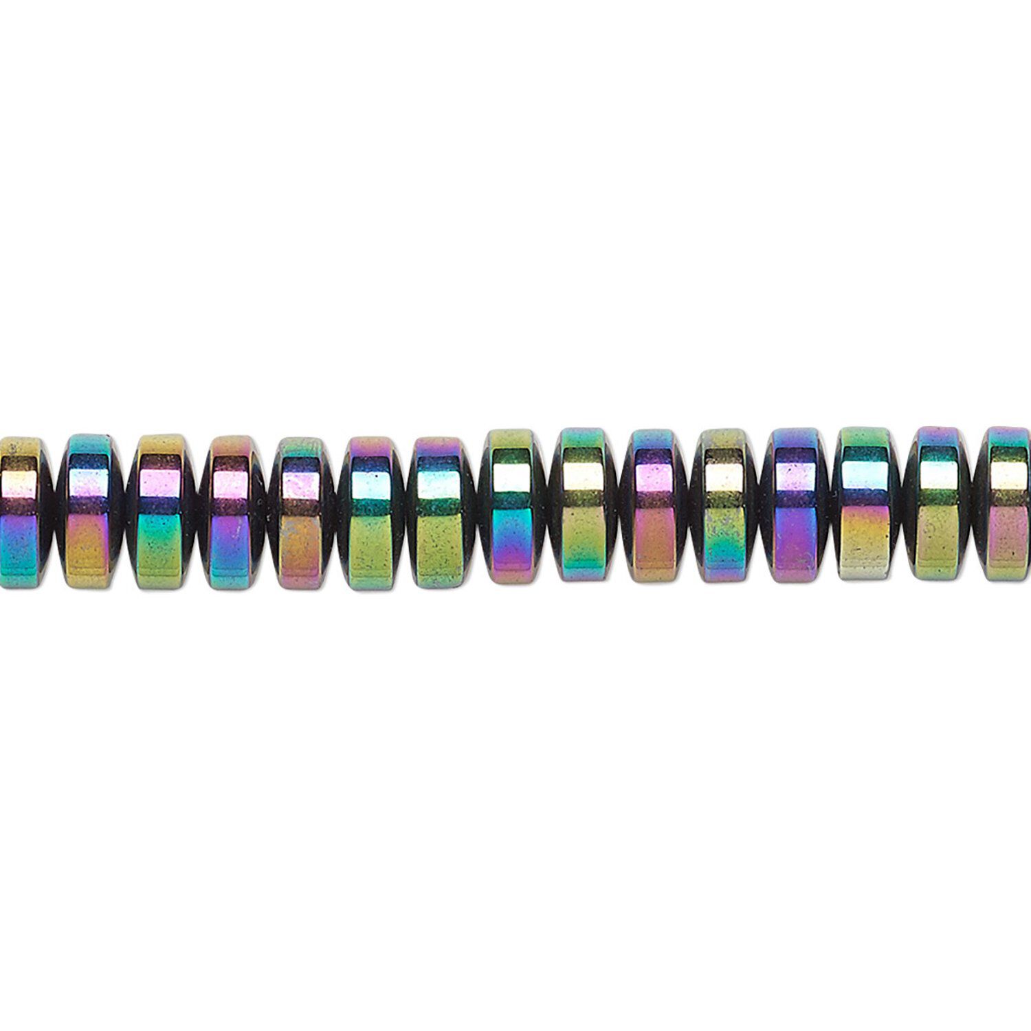 Hemalyke™ 1pkg1, rainbow titanium-coated rondelle bead 15.5-16 inch 7x3mm