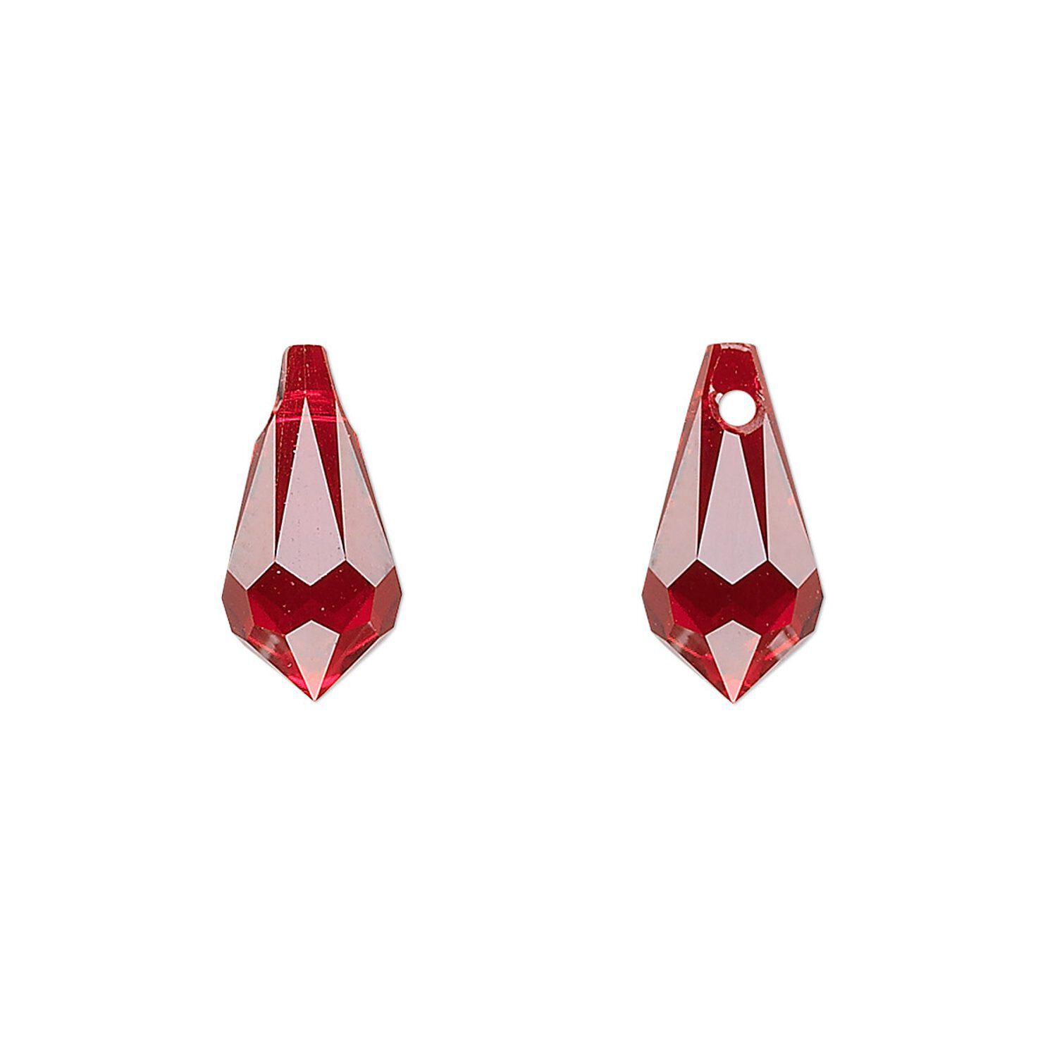 Swarovski® is renowned for their precision facets and optimum color brilliance. The Swarovski® teardrop offers design versatility and classic elegance. Large beveled hole prevents fraying and can be strung through medium-sized cord or chain. Hole size and placement may vary slightly.