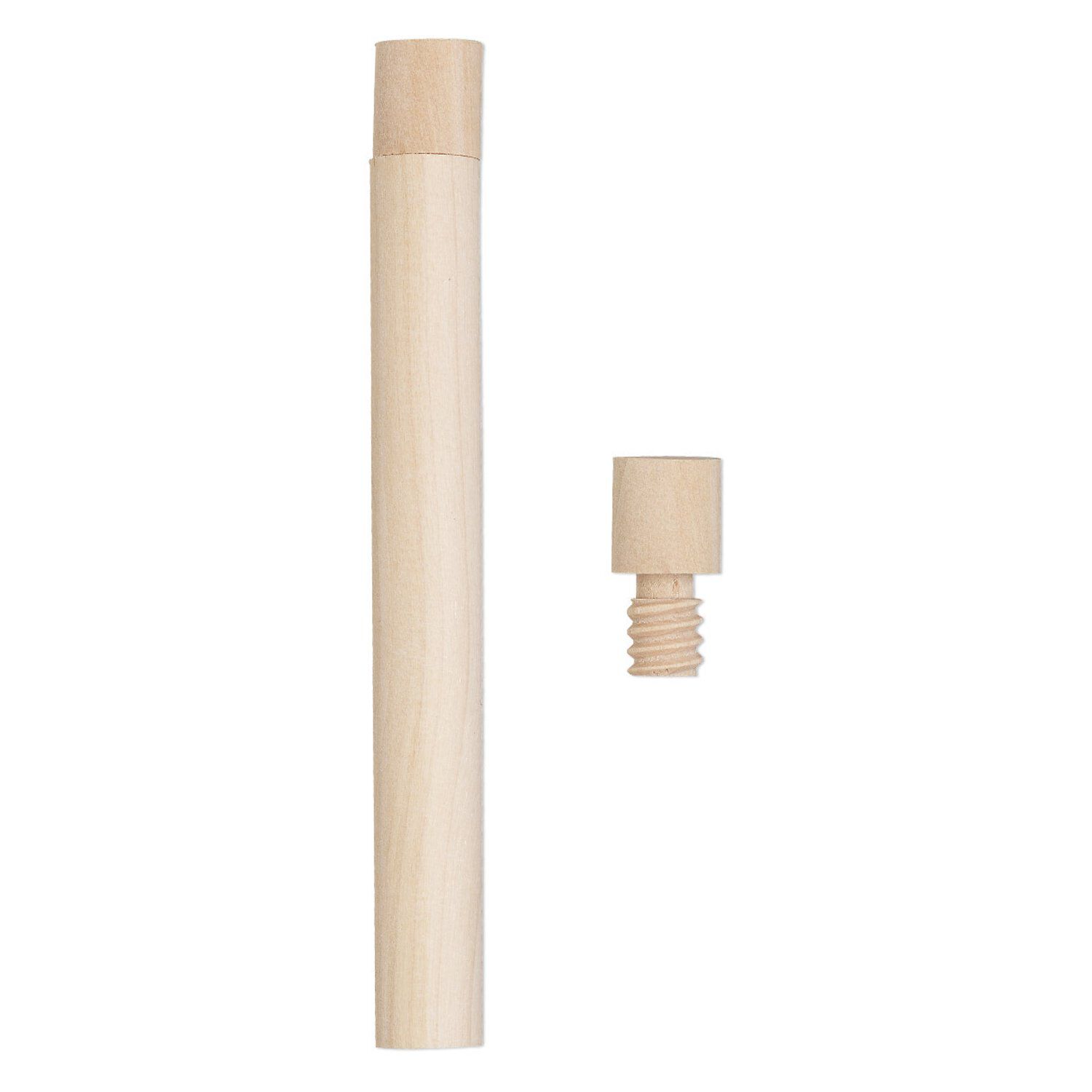 Bottle, wood (natural), 4 x 7/16 inch cylinder with twist-off cap. Sold per pkg of 4.