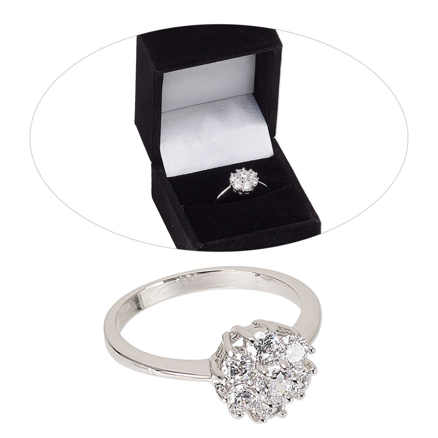 Ring, cubic zirconia and rhodium-finished brass, clear, 10mm tiered flower, size 8. Sold individually.