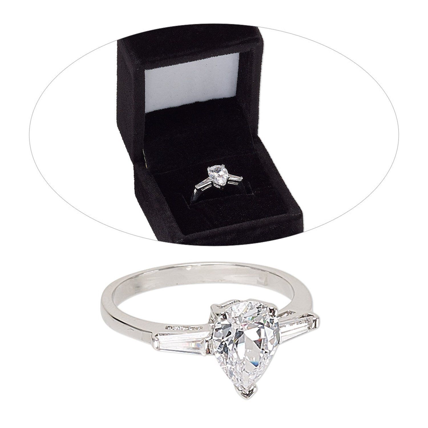 This rhodium-finished brass ring features a beautiful clear cubic zirconia teardrop stone. Along with the celebrated sparkle and color, this laboratory-synthesized luxury gemstone emulates numerous mineral qualities of natural diamonds and gemstones.