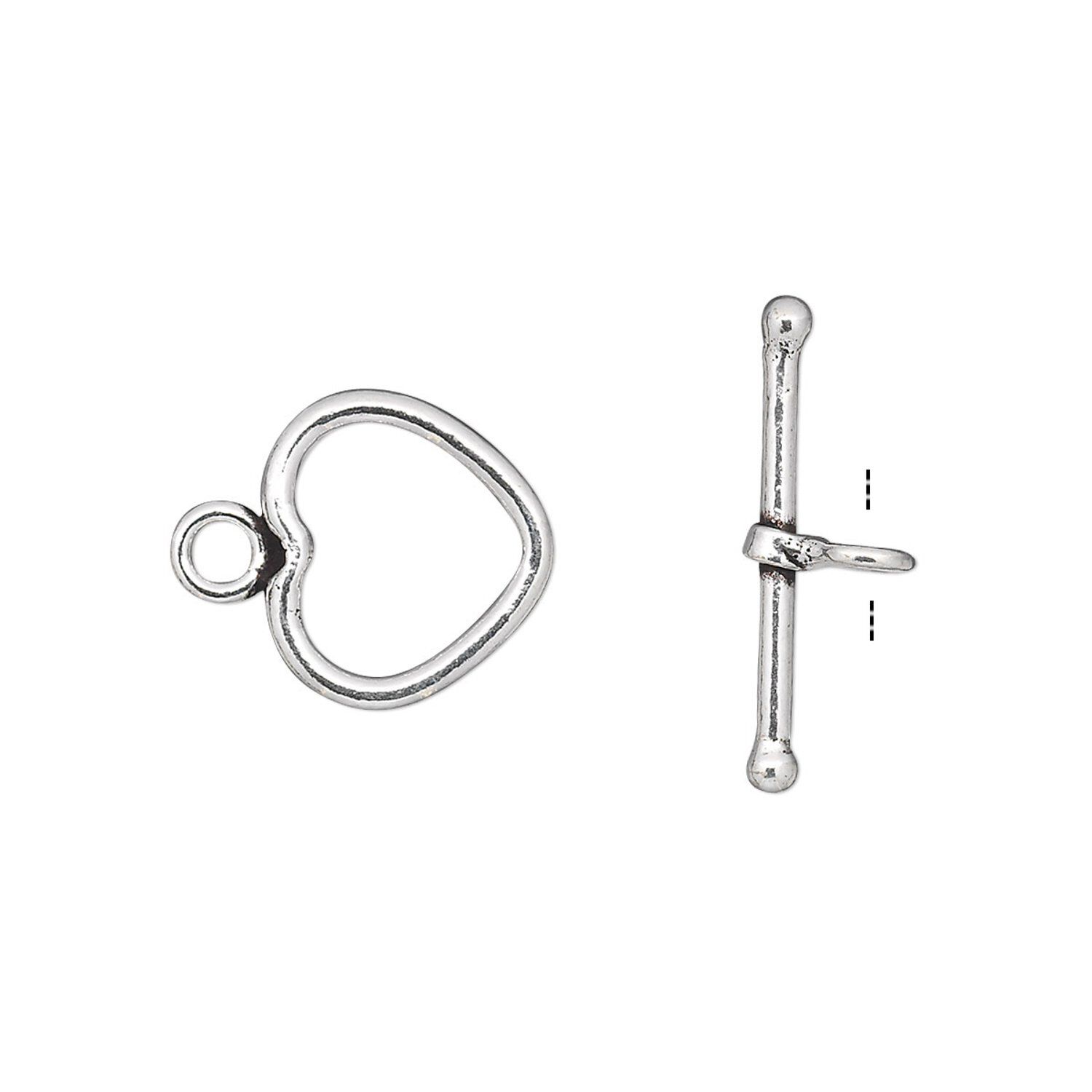 Clasp toggle 1pkg1 sterling silver, 12x11.5mm heart, 1-strand